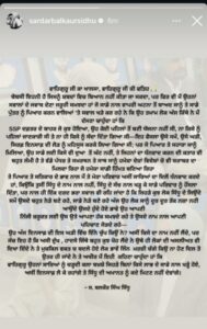 ਮਾਨਸਾ ਦੇ SSP ਦਫਤਰ ਦੇ ਬਾਹਰ ਧਰਨੇ ਮਗਰੋਂ ਬਲਕੌਰ ਸਿੰਘ ਦਾ ਵੱਡਾ ਬਿਆਨ ਸਾਹਮਣੇ ਆਇਆ ਹੈ। ਉਨ੍ਹਾਂ ਲਿਖਿਆ-ਵਾਹਿਗੁਰੂ ਜੀ ਕਾ ਖਾਲਸਾ, ਵਾਹਿਗੁਰੂ ਜੀ ਕੀ ਫਤਿਹ। ਬੇਬਸੀ ਇੰਨੀ ਹੈ ਜਿਸ ਨੂੰ ਸ਼ਬਦਾਂ ਵਿਚ ਬਿਆਨ ਨਹੀਂ ਕੀਤਾ ਜਾ ਸਕਦਾ ਪਰ ਫਿਰ ਵੀ ਮੈਂ ਉਨ੍ਹਾਂ ਸਵਾਲਾਂ ਦੇ ਜਵਾਬ ਦੇਣਾ ਜ਼ਰੂਰੀ ਸਮਝਦਾ ਹਾਂ ਜੋ ਸਾਡੇ ਨਾਲ ਵਾਪਰੀ ਘਟਨਾ ਤੋਂ ਬਾਅਦ ਸਾਨੂੰ ਤੇ ਸਾਡੇ ਪੁੱਤਰ ਨੂੰ ਪਿਆਰ ਕਰਨ ਵਾਲਿਆਂ ‘ਤੇ ਸਵਾਲ ਖੜ੍ਹੇ ਕਰ ਰਹੇ ਹਨ ਕਿ ਉਹ ਤਮਾਮ ਲੋਕ ਅੱਜ ਕਿਥੇ ਨੇ ਮੈਂ ਦੱਸਣਾ ਚਾਹੁੰਦਾ ਹਾਂ।