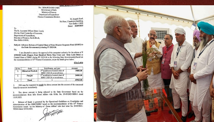 ਕੇਂਦਰ ਸਰਕਾਰ ਨੇ SDRF ਤਹਿਤ ਵਿੱਤੀ ਸਾਲ 2025-26 ਲਈ ਪੰਜਾਬ ਨੂੰ 240 ਕਰੋੜ ਰੁਪਏ ਦੀ ਐਡਵਾਂਸ ਕਿਸ਼ਤ ਜਾਰੀ ਕਰ ਦਿੱਤੀ ਹੈ। ਸੂਬੇ ਵਿਚ ਹੜ੍ਹ ਦੇ ਹਾਲਾਤ ਨੂੰ ਦੇਖਦੇ ਹੋਏ ਕੇਂਦਰ ਨੇ ਇਹ ਰਕਮ ਜਾਰੀ ਕਰਨ ਦਾ ਫੈਸਲਾ ਕੀਤਾ ਹੈ ਨਾਲ ਹੀ ਹਿਮਾਚਲ ਪ੍ਰਦੇਸ਼ ਨੂੰ ਵੀ 198 ਕਰੋੜ ਸੂਬੇ ਦੇ ਐਡਵਾਂਸ ਕਿਸ਼ਤ ਵਜੋਂ ਜਾਰੀ ਕਰਨ ਦਾ ਐਲਾਨ ਕੀਤਾ ਗਿਆ ਹੈ।