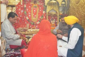 ਪੰਜਾਬ ਦੇ ਮੁੱਖ ਮੰਤਰੀ ਭਗਵੰਤ ਮਾਨ ਅੱਜ ਬਿਲਾਸਪੁਰ ਜ਼ਿਲ੍ਹੇ ਵਿਚ ਸਥਿਤ ਮਾਂ ਨੈਣਾ ਦੇਵੀ ਦੇ ਦਰਬਾਰ ਵਿਚ ਪਹੁੰਚੇ। ਇਨ੍ਹੀਂ ਦਿਨੀਂ ਨਵਰਾਤਰੇ ਚੱਲ ਰਹੇ ਹਨ। ਇਸ ਦੌਰਾਨ ਉਨ੍ਹਾਂ ਦੀ ਪਤਨੀ ਡਾ. ਗੁਰਪ੍ਰੀਤ ਕੌਰ ਵੀ ਮੌਜੂਦ ਸੀ। ਸੀਐੱਮ ਨੇ ਹਵਨ ਯੱਗ ਕੀਤਾ। ਦੂਜੇ ਪਾਸੇ ਮਾਂ ਦੀ ਪੂਜਾ ਅਰਚਨਾ ਕੀਤੀ।