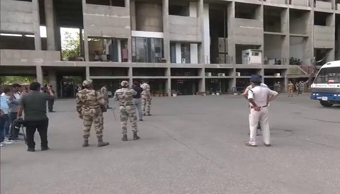 ਦੂਜੇ ਪਾਸੇ ਹਰਿਆਣਾ ਸਕੱਤਰੇਤ ਵਿਚ ਤਾਇਨਾਤ CISF, ਚੰਡੀਗੜ੍ਹ ਪੁਲਿਸ ਤੇ ਸੀਆਈਡੀ ਅਲਰਟ ਹੈ। ਪੁਲਿਸ ਧਮਕੀ ਦੇਣ ਵਾਲੇ ਸ਼ਖਸ ਦੀ ਭਾਲ ਕਰ ਰਹੀ ਹੈ। ਪੁਲਿਸ ਨੇ ਸਕੱਤਰੇਤ ਨੂੰ ਖਾਲੀ ਕਰਾ ਲਿਆ ਹੈ। ਬਿਲਡਿੰਗ ਤੇ ਆਸ-ਪਾਸ ਦੇ ਇਲਾਕੇ ਵਿਚ ਬੰਬ ਤੇ ਡੌਗ ਸਕੁਐਡ ਬੁਲਾ ਕੇ ਸਰਚ ਆਪ੍ਰੇਸ਼ਨ ਚਲਾਇਆ ਜਾ ਰਿਹਾ ਹੈ।