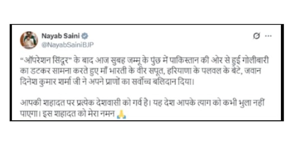 ਪੁੰਛ ‘ਚ ਪਾਕਿਸਤਾਨ ਦੀ ਗੋਲੀਬਾਰੀ ‘ਚ ਭਾਰਤੀ ਫੌਜ ਦਾ ਜਵਾਨ ਹੋਇਆ ਸ਼ਹੀਦ, ਅੱਜ ਹੋਵੇਗਾ ਅੰਤਿਮ ਸਸਕਾਰ