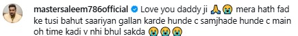 ਗਾਇਕ ਮਾਸਟਰ ਸਲੀਮ ਦੇ ਪਿਤਾ ਪੂਰਨ ਸ਼ਾਹਕੋਟੀ ਦੇ ਪਿਤਾ ਜੀ ਦਾ ਕੁਝ ਦਿਨ ਪਹਿਲਾਂ ਦਿਹਾਂਤ ਹੋ ਗਿਆ ਸੀ । ਜਿਸ ਤੋਂ ਬਾਅਦ ਆਪਣੇ ਪਿਤਾ ਨੂੰ ਯਾਦ ਕਰਕੇ ਮਾਸਟਰ ਸਲੀਮ ਭਾਵੁਕ ਹੋ ਗਏ। ਸੋਸ਼ਲ ਮੀਡੀਆ ‘ਤੇ ਭਾਵੁਕ ਪੋਸਟ ਸਾਂਝੀ ਕਰਦਿਆਂ ਉਨ੍ਹਾਂ ਨੇ ਆਪਣੇ ਪਿਤਾ ਜੀ ਦੇ ਨਾਲ ਇੱਕ ਤਸਵੀਰ ਸਾਂਝੀ ਕੀਤੀ ਹੈ। ਜਿਸ ‘ਚ ਉਨ੍ਹਾਂ ਨੇ ਆਪਣੇ ਪਿਤਾ ਦੇ ਹੱਥ ਨੂੰ ਆਪਣੇ ਹੱਥ ‘ਚ ਲਿਆ ਹੋਇਆ ਹੈ।