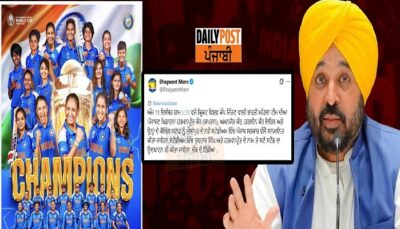 CM ਮਾਨ ਅੱਜ ਕ੍ਰਿਕਟ ਵਿਸ਼ਵ ਕੱਪ ਜਿੱਤਣ ਵਾਲੀ ਭਾਰਤੀ ਮਹਿਲਾ ਟੀਮ ਦੀਆਂ ਪੰਜਾਬਣ ਖਿਡਾਰਨਾਂ ਨੂੰ ਕਰਨਗੇ ਸਨਮਾਨਿਤ