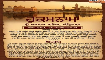 ਸ੍ਰੀ ਦਰਬਾਰ ਸਾਹਿਬ ਤੋਂ ਅੱਜ ਦਾ ਹੁਕਮਨਾਮਾ 31-03-2021