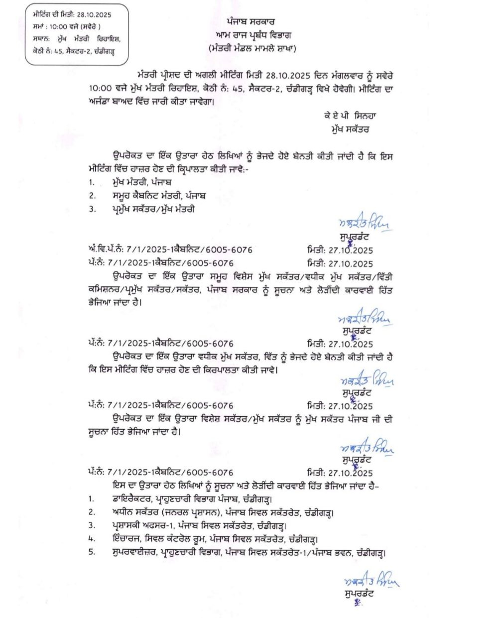 ਇਸ ਸਮੇਂ ਤਰਨਤਾਰਨ ਦੀਆਂ ਉਪ ਚੋਣਾਂ ਦਾ ਚੋਣ ਜ਼ਾਬਤਾ ਲੱਗਾ ਹੋਇਆ ਹੈ। ਅਜਿਹੇ ਵਿਚ ਸਪੱਸ਼ਟ ਹੈ ਕਿ ਕੋਈ ਅਜਿਹਾ ਫੈਸਲਾ ਨਹੀਂ ਲਿਆ ਜਾਵੇਗਾ ਜਿਸ ਨਾਲ ਚੋਣ ਦੇ ਨਤੀਜਿਆਂ ‘ਤੇ ਅਸਰ ਪਵੇ ਪਰ ਇਹ ਵੀ ਸਪੱਸ਼ਟ ਹੈ ਕਿ ਸਰਕਾਰ ਇਸ ਸਮੇਂ ਕੁਝ ਰਾਹਤ ਦੇਣ ਦੀ ਕੋਸ਼ਿਸ਼ ਕਰੇਗੀ। ਇਸ ਤੋਂ ਇਲਾਵਾ ਕੁਝ ਨਵੀਆਂ ਭਰਤੀਆਂ ਨਾਲ ਸਬੰਧਤ ਪ੍ਰਸਤਾਵਾਂ ਨੂੰ ਮੀਟਿੰਗ ਵਿਚ ਮਨਜ਼ੂਰੀ ਲਈ ਰੱਖਿਆ ਜਾਵੇਗਾ।
