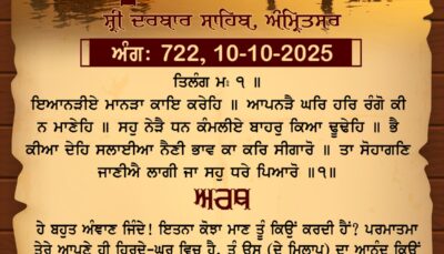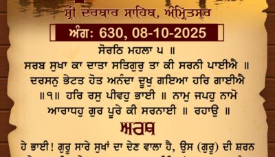 ਸ੍ਰੀ ਦਰਬਾਰ ਸਾਹਿਬ ਤੋਂ ਅੱਜ ਦਾ ਹੁਕਮਨਾਮਾ 10-10-2025
