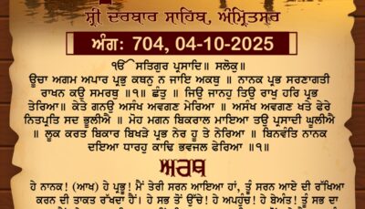 ਸ੍ਰੀ ਦਰਬਾਰ ਸਾਹਿਬ ਤੋਂ ਅੱਜ ਦਾ ਹੁਕਮਨਾਮਾ 4-10-2025