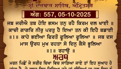 ਸ੍ਰੀ ਦਰਬਾਰ ਸਾਹਿਬ ਤੋਂ ਅੱਜ ਦਾ ਹੁਕਮਨਾਮਾ 5-10-2025