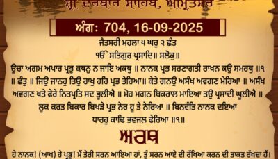 ਸ੍ਰੀ ਦਰਬਾਰ ਸਾਹਿਬ ਤੋਂ ਅੱਜ ਦਾ ਹੁਕਮਨਾਮਾ 16-9-2025
