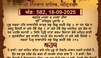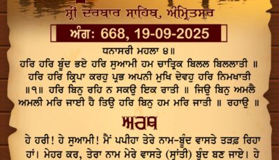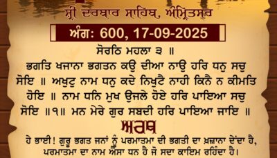 ਸ੍ਰੀ ਦਰਬਾਰ ਸਾਹਿਬ ਤੋਂ ਅੱਜ ਦਾ ਹੁਕਮਨਾਮਾ 19-9-2025