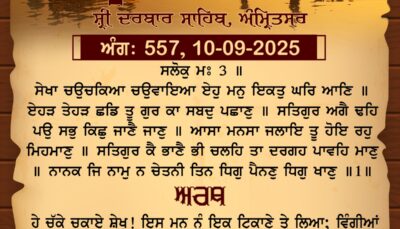 ਸ੍ਰੀ ਦਰਬਾਰ ਸਾਹਿਬ ਤੋਂ ਅੱਜ ਦਾ ਹੁਕਮਨਾਮਾ 10-9-2025