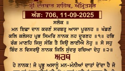 ਸ੍ਰੀ ਦਰਬਾਰ ਸਾਹਿਬ ਤੋਂ ਅੱਜ ਦਾ ਹੁਕਮਨਾਮਾ 11-9-2025