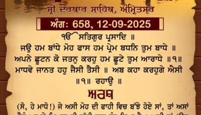 ਸ੍ਰੀ ਦਰਬਾਰ ਸਾਹਿਬ ਤੋਂ ਅੱਜ ਦਾ ਹੁਕਮਨਾਮਾ 13-9-2025