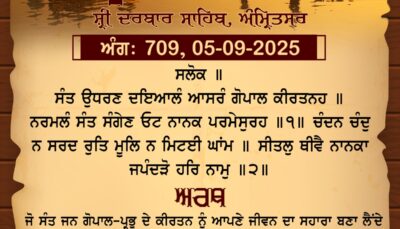 ਸ੍ਰੀ ਦਰਬਾਰ ਸਾਹਿਬ ਤੋਂ ਅੱਜ ਦਾ ਹੁਕਮਨਾਮਾ 5-9-2025
