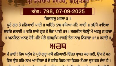 ਸ੍ਰੀ ਦਰਬਾਰ ਸਾਹਿਬ ਤੋਂ ਅੱਜ ਦਾ ਹੁਕਮਨਾਮਾ 6-9-2025