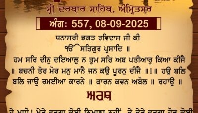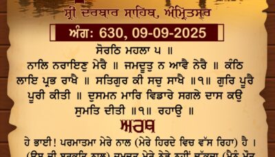 ਸ੍ਰੀ ਦਰਬਾਰ ਸਾਹਿਬ ਤੋਂ ਅੱਜ ਦਾ ਹੁਕਮਨਾਮਾ 9-9-2025
