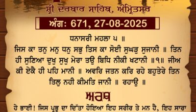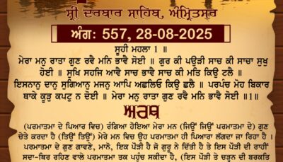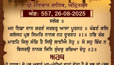 ਸ੍ਰੀ ਦਰਬਾਰ ਸਾਹਿਬ ਤੋਂ ਅੱਜ ਦਾ ਹੁਕਮਨਾਮਾ 26-8-2025
