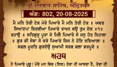 ਸ੍ਰੀ ਦਰਬਾਰ ਸਾਹਿਬ ਤੋਂ ਅੱਜ ਦਾ ਹੁਕਮਨਾਮਾ 20-8-2025