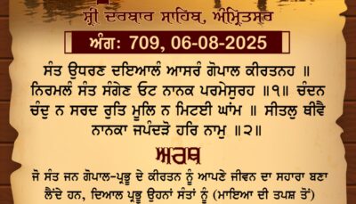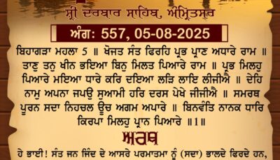 ਸ੍ਰੀ ਦਰਬਾਰ ਸਾਹਿਬ ਤੋਂ ਅੱਜ ਦਾ ਹੁਕਮਨਾਮਾ 5-8-2025
