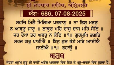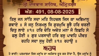 ਸ੍ਰੀ ਦਰਬਾਰ ਸਾਹਿਬ ਤੋਂ ਅੱਜ ਦਾ ਹੁਕਮਨਾਮਾ 8-8-2025
