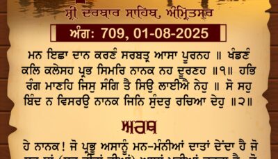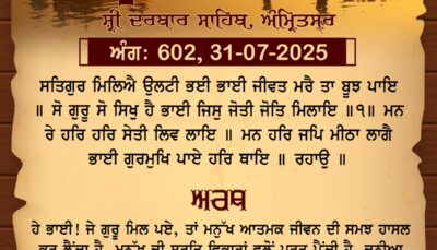 ਸ੍ਰੀ ਦਰਬਾਰ ਸਾਹਿਬ ਤੋਂ ਅੱਜ ਦਾ ਹੁਕਮਨਾਮਾ 31-7-2025