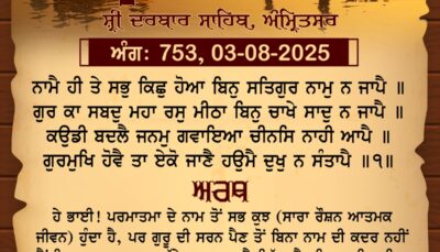 ਸ੍ਰੀ ਦਰਬਾਰ ਸਾਹਿਬ ਤੋਂ ਅੱਜ ਦਾ ਹੁਕਮਨਾਮਾ 3-8-2025