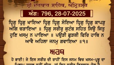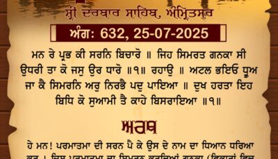 ਸ੍ਰੀ ਦਰਬਾਰ ਸਾਹਿਬ ਤੋਂ ਅੱਜ ਦਾ ਹੁਕਮਨਾਮਾ 25-7-2025