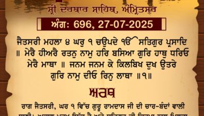 ਸ੍ਰੀ ਦਰਬਾਰ ਸਾਹਿਬ ਤੋਂ ਅੱਜ ਦਾ ਹੁਕਮਨਾਮਾ 26-7-2025