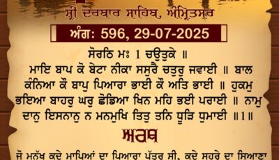 ਸ੍ਰੀ ਦਰਬਾਰ ਸਾਹਿਬ ਤੋਂ ਅੱਜ ਦਾ ਹੁਕਮਨਾਮਾ 29-7-2025