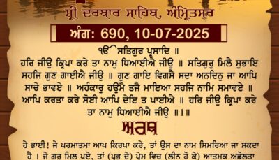 ਸ੍ਰੀ ਦਰਬਾਰ ਸਾਹਿਬ ਤੋਂ ਅੱਜ ਦਾ ਹੁਕਮਨਾਮਾ 10-7-2025
