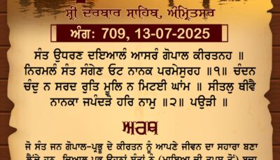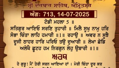 ਸ੍ਰੀ ਦਰਬਾਰ ਸਾਹਿਬ ਤੋਂ ਅੱਜ ਦਾ ਹੁਕਮਨਾਮਾ 14-7-2025
