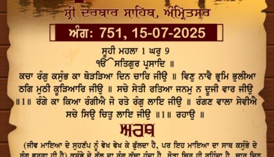ਸ੍ਰੀ ਦਰਬਾਰ ਸਾਹਿਬ ਤੋਂ ਅੱਜ ਦਾ ਹੁਕਮਨਾਮਾ 15-7-2025