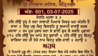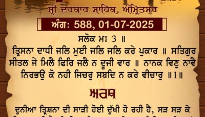 ਸ੍ਰੀ ਦਰਬਾਰ ਸਾਹਿਬ ਤੋਂ ਅੱਜ ਦਾ ਹੁਕਮਨਾਮਾ 1-7-2025