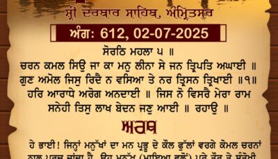 ਸ੍ਰੀ ਦਰਬਾਰ ਸਾਹਿਬ ਤੋਂ ਅੱਜ ਦਾ ਹੁਕਮਨਾਮਾ 2-7-2025