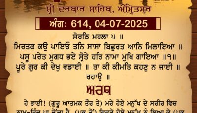 ਸ੍ਰੀ ਦਰਬਾਰ ਸਾਹਿਬ ਤੋਂ ਅੱਜ ਦਾ ਹੁਕਮਨਾਮਾ 4-7-2025