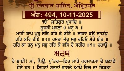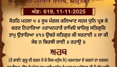 ਸ੍ਰੀ ਦਰਬਾਰ ਸਾਹਿਬ ਤੋਂ ਅੱਜ ਦਾ ਹੁਕਮਨਾਮਾ 10-11-2025
