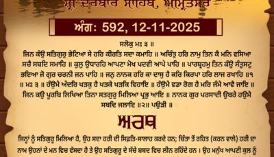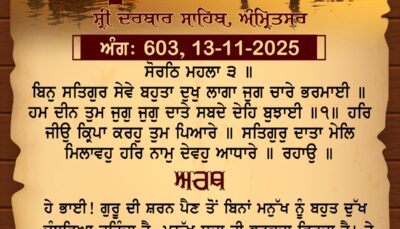 ਸ੍ਰੀ ਦਰਬਾਰ ਸਾਹਿਬ ਤੋਂ ਅੱਜ ਦਾ ਹੁਕਮਨਾਮਾ 13-11-2025