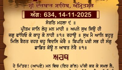 ਸ੍ਰੀ ਦਰਬਾਰ ਸਾਹਿਬ ਤੋਂ ਅੱਜ ਦਾ ਹੁਕਮਨਾਮਾ 14-11-2025