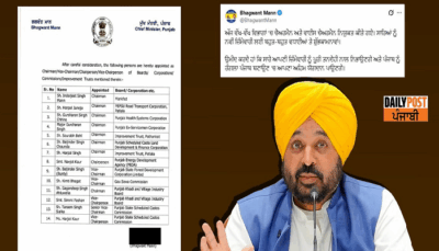ਆਮ ਆਦਮੀ ਪਾਰਟੀ ਵੱਲੋਂ ਵੱਖ-ਵੱਖ ਬੋਰਡਾਂ ਦੇ ਅਹੁਦੇਦਾਰਾਂ ਦਾ ਐਲਾਨ ਕੀਤਾ ਗਿਆ ਹੈ। ਲਿਸਟ ‘ਚ ਚੇਅਰਮੈਨ, ਸੀਨੀਅਰ ਵਾਈਸ-ਚੇਅਰਮੈਨ,...