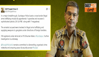 ਗੁਰਦਾਸਪੁਰ ਪੁਲਿਸ ਨੇ ਹਥਿਆਰਾਂ ਦੀ ਤਸਕਰੀ ਕਰਨ ਵਾਲੇ ਸੰਚਾਲਕ ਨੂੰ ਕੀਤਾ ਗ੍ਰਿਫ਼ਤਾਰ, 5 ਪਿਸਤੌਲਾਂ ਵੀ ਬਰਾਮਦ