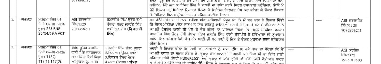 ਅਜਨਾਲਾ ਪੁਲਿਸ ਸਟੇਸ਼ਨ ਵਿੱਚ ਆਈਪੀਸੀ ਦੀ ਧਾਰਾ 223 ਅਤੇ ਅਸਲਾ ਐਕਟ ਦੇ ਤਹਿਤ ਮਾਮਲਾ ਦਰਜ ਕੀਤਾ ਗਿਆ ਹੈ। ਸ਼ਿਕਾਇਤ ਦਰਜ ਕਰਨ ਵਾਲੇ ਏਐਸਆਈ ਕਵਲਜੀਤ ਸਿੰਘ ਨੇ ਗੁੱਝਾਪੀਰ ਦੇ ਰਹਿਣ ਵਾਲੇ ਰਮਨਦੀਪ ਸਿੰਘ ਉਰਫ਼ ਰੰਮੀ ਰੰਧਾਵਾ ਨੂੰ ਦੋਸ਼ੀ ਵਜੋਂ ਨਾਮਜ਼ਦ ਕੀਤਾ ਹੈ। ਆਪਣੇ ਬਿਆਨ ਵਿੱਚ ਏਐਸਆਈ ਕਵਲਜੀਤ ਨੇ ਕਿਹਾ ਕਿ ਇੱਕ ਮੁਖਬਰ ਨੇ ਉਨ੍ਹਾਂ ਨੂੰ ਸੂਚਨਾ ਦਿੱਤੀ ਸੀ ਕਿ ਸੋਸ਼ਲ ਮੀਡੀਆ ‘ਤੇ ਇੱਕ ਵੀਡੀਓ ਵਾਇਰਲ ਹੋ ਰਹੀ ਹੈ।