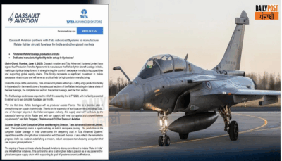 ਦੁਸ਼ਮਣਾਂ ਨੂੰ ਪਾਣੀ ਪਿਲਾਉਣ ਵਾਲੇ ਰਾਫੇਲ ਲੜਾਕੂ ਜਹਾਜ਼ ਨਾਲ ਜੁੜੀ ਵੱਡੀ ਖਬਰ ਹੈ। ਫਰਾਂਸੀਸੀ ਫਰਮ ਡਸਾਲਟ ਏਵੀਏਸ਼ਨ ਤੇ ਭਾਰਤ ਦੀ ਟਾਟਾ...