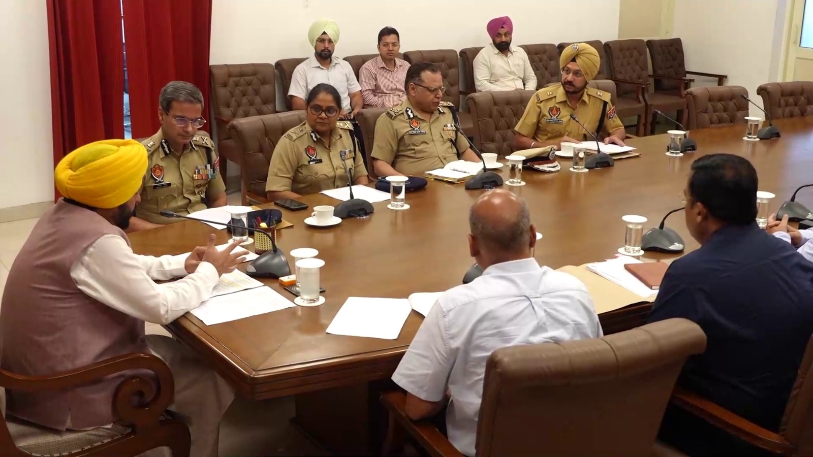 ਮੁੱਖ ਮੰਤਰੀ ਭਗਵੰਤ ਮਾਨ ਨੇ ਇਹ ਮੀਟਿੰਗ ਅਜਿਹੇ ਸਮੇਂ ਬੁਲਾਈ ਹੈ ਜਦੋਂ ਵਿਰੋਧੀ ਧਿਰ ਕਾਨੂੰਨ ਵਿਵਸਥਾ ਦੇ ਮੁੱਦੇ ‘ਤੇ ਸਰਕਾਰ ਨੂੰ ਲਗਾਤਾਰ ਘੇਰ ਰਹੀ ਹੈ। ਵਿਰੋਧੀ ਧਿਰ ਨੇ ਵਿਸ਼ੇਸ਼ ਸੈਸ਼ਨ ਵਿੱਚ ਵੀ ਇਹ ਮੁੱਦਾ ਉਠਾਇਆ ਸੀ। ਅਜਿਹੀ ਸਥਿਤੀ ਵਿੱਚ ਮੁੱਖ ਮੰਤਰੀ ਹੁਣ ਇਸ ਮਾਮਲੇ ‘ਤੇ ਕਿਸੇ ਵੀ ਤਰ੍ਹਾਂ ਦਾ ਸਮਝੌਤਾ ਕਰਨ ਦੇ ਮੂਡ ਵਿੱਚ ਨਹੀਂ ਹਨ। ਇਸ ਮੀਟਿੰਗ ਵਿੱਚ ਨਵੇਂ ਤਰੱਕੀ ਪ੍ਰਾਪਤ ਅੱਠ ਵਿਸ਼ੇਸ਼ ਡੀਜੀਪੀ ਵੀ ਮੌਜੂਦ ਸਨ। ਮੁੱਖ ਮੰਤਰੀ ਨੇ ਸਪੱਸ਼ਟ ਕੀਤਾ ਹੈ ਕਿ ਇਸ ਮਾਮਲੇ ਨੂੰ ਗੰਭੀਰਤਾ ਨਾਲ ਲਿਆ ਜਾਣਾ ਚਾਹੀਦਾ ਹੈ। ਸਾਰੇ ਜ਼ਿੰਮੇਵਾਰ ਲੋਕਾਂ ਨੂੰ ਇਸ ਬਾਰੇ ਸੁਚੇਤ ਰਹਿਣ ਲਈ ਕਿਹਾ ਗਿਆ ਹੈ।