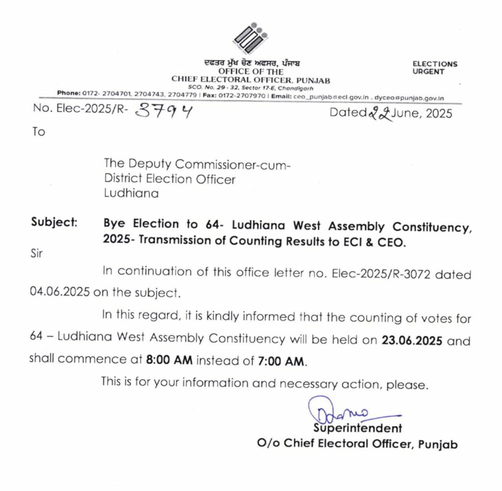 ਲੁਧਿਆਣਾ ਪੱਛਮੀ ਜ਼ਿਮਨੀ ਚੋਣ ਲਈ ਵੋਟਾਂ ਦੀ ਗਿਣਤੀ ਕੱਲ੍ਹ 23 ਜੂਨ ਨੂੰ ਸਵੇਰੇ 8 ਵਜੇ ਸ਼ੁਰੂ ਹੋਵੇਗੀ। ਰੁਝਾਨ ਸਵੇਰੇ 10 ਵਜੇ ਤੋਂ ਆਉਣਗੇ। ਇਹ ਗਿਣਤੀ ਕੁੱਲ 14 ਗੇੜਾਂ ਵਿੱਚ ਕੀਤੀ ਜਾਵੇਗੀ। ਸੂਤਰਾਂ ਅਨੁਸਾਰ ਗਿਣਤੀ ਲਈ ਕੁੱਲ 14 ਟੇਬਲ ਲਗਾਏ ਜਾ ਰਹੇ ਹਨ। ਖਾਲਸਾ ਕਾਲਜ ਫਾਰ ਵੂਮੈਨ ਵਿਖੇ ਪੁਲਿਸ ਪ੍ਰਸ਼ਾਸਨ ਵੱਲੋਂ ਸਖ਼ਤ ਸੁਰੱਖਿਆ ਪ੍ਰਬੰਧ ਕੀਤੇ ਜਾ ਰਹੇ ਹਨ। ਜ਼ਿਲ੍ਹਾ ਪ੍ਰਸ਼ਾਸਨ ਨੇ ਗਿਣਤੀ ਕੇਂਦਰ ‘ਤੇ ਸਖ਼ਤ ਸੁਰੱਖਿਆ ਸਮੇਤ ਵਿਆਪਕ ਉਪਾਅ ਲਾਗੂ ਕੀਤੇ ਹਨ। ਸਾਰੇ ਸਬੰਧਤ ਹਿੱਸੇਦਾਰਾਂ ਦੀ ਸਹੂਲਤ ਲਈ ਪਾਰਕਿੰਗ ਪ੍ਰਬੰਧਾਂ ਨੂੰ ਅਨੁਕੂਲ ਬਣਾਉਣ ਵੱਲ ਵਿਸ਼ੇਸ਼ ਧਿਆਨ ਦਿੱਤਾ ਗਿਆ ਹੈ।