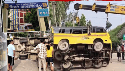 ਖੰਨਾ : ਬੱਸ ਤੇ ਟਿੱਪਰ ਵਿਚਾਲੇ ਟੱਕਰ ਮਗਰੋਂ ਸੜਕ ‘ਤੇ ਪਲਟੀ ਬੱਸ, ਡੇਢ ਦਰਜਨ ਦੇ ਕਰੀਬ ਲੋਕ ਹੋਏ ਫੱਟੜ