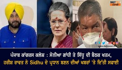 ਪੰਜਾਬ ਕਾਂਗਰਸ ਕਲੇਸ਼ : ਸੋਨੀਆ ਗਾਂਧੀ ਤੇ ਸਿੱਧੂ ਦੀ ਬੈਠਕ ਖਤਮ, ਹਰੀਸ਼ ਰਾਵਤ ਨੇ Sidhu ਦੇ ਪ੍ਰਧਾਨ ਬਣਨ ਦੀਆਂ ਖਬਰਾਂ ‘ਤੇ ਦਿੱਤੀ ਸਫਾਈ