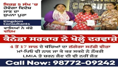 ਕੈਨੇਡਾ ਸਰਕਾਰ ਨੇ ਖੋਲ੍ਹੇ ਦਰਵਾਜ਼ੇ, ਬੱਚਿਆਂ ਦਾ ਲੱਗੇਗਾ ਸਟੱਡੀ ਵੀਜ਼ਾ, ਮਾਪੇ ਵੀ ਨਾਲ ਜਾ ਕੇ ਕਰ ਸਕਦੇ ਨੌਕਰੀ