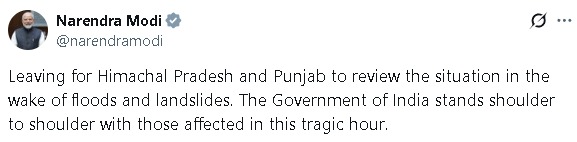 ਪੰਜਾਬ ਤੇ ਹਿਮਾਚਲ ਲਈ ਰਵਾਨਾ ਹੋਏ PM ਮੋਦੀ, ਹੜ੍ਹ ਪ੍ਰਭਾਵਿਤ ਸੂਬਿਆਂ ਦਾ ਕਰਨਗੇ ਹਵਾਈ ਸਰਵੇਖਣ