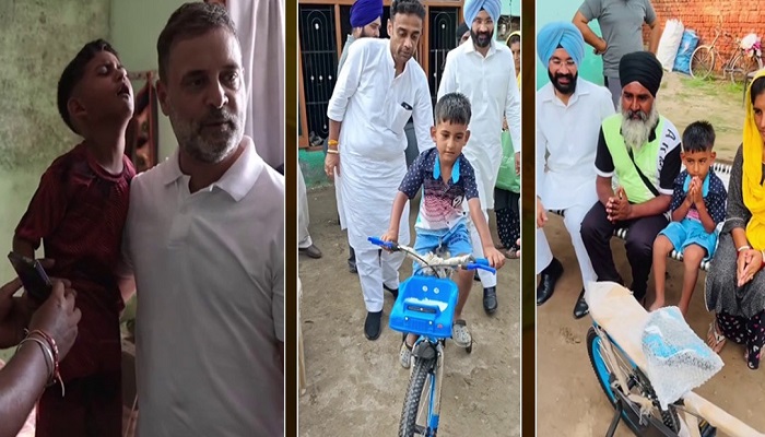 ਕਾਂਗਰਸ ਨੇਤਾ ਰਾਹੁਲ ਗਾਂਧੀ ਨੇ ਅੰਮ੍ਰਿਤਸਰ ਦੇ ਰਹਿਣ ਵਾਲੇ 8 ਸਾਲਾ ਅੰਮ੍ਰਿਤਪਾਲ ਸਿੰਘ ਨੂੰ ਸਾਈਕਲ ਗਿਫਟ ਕੀਤੀ ਹੈ। 15 ਸਤੰਬਰ ਨੂੰ ਪੰਜਾਬ ਦੀ ਆਪਣੀ ਫੇਰੀ ਦੌਰਾਨ ਰਾਹੁਲ ਗਾਂਧੀ ਨੇ ਅੰਮ੍ਰਿਤਸਰ ਦੇ ਹੜ੍ਹ ਪ੍ਰਭਾਵਿਤ ਪਿੰਡ ਘੋਨੇਵਾਲ ਦਾ ਦੌਰਾ ਕੀਤਾ। ਰੋਂਦੇ ਹੋਏ ਅੰਮ੍ਰਿਤਪਾਲ ਨੇ ਰਾਹੁਲ ਗਾਂਧੀ ਨੂੰ ਦੱਸਿਆ ਸੀ ਕਿ ਉਸ ਦੀ ਸਾਈਕਲ ਹੜ੍ਹ ਵਿੱਚ ਟੁੱਟ ਗਈ ਹੈ। ਰਾਹੁਲ ਗਾਂਧੀ ਨੇ ਉਸਨੂੰ ਚੁੱਪ ਕਰਨ ਲਈ ਚੁੱਕਿਆ ਅਤੇ ਘਰ ਵਿੱਚ ਬੱਚੇ ਦੀ ਟੁੱਟੀ ਹੋਈ ਸਾਈਕਲ ਵੀ ਦੇਖੀ ਤੇ ਉਸ ਨੂੰ ਨਵੀਂ ਸਾਈਕਲ ਦਿਵਾਉਣ ਦਾ ਵਾਅਦਾ ਵੀ ਕੀਤਾ ਸੀ।