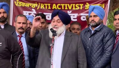 ਸ਼੍ਰੋਮਣੀ ਅਕਾਲੀ ਦਲ ਦੇ ਪ੍ਰਧਾਨ ਸ. ਸੁਖਬੀਰ ਸਿੰਘ ਬਾਦਲ ਨੇ ਪੱਤਰਕਾਰਾਂ ਤੇ RTI ਕਾਰਕੁੰਨਾਂ ਖ਼ਿਲਾਫ਼ ਕੀਤੀ ਕਾਰਵਾਈ ਲਈ ਇਕਜੁੱਟਤਾ...